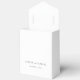 This romantic and classic Christmas or winter-themed favor box design features a cluster of vibrant red and white winter flowers, pine, holly berries and rustic twigs, custom modern "Thank You" text graphic and editable text fields.