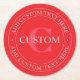 Elegant Circular Text Template Editable Red White Round Paper Coaster