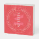 Elegant Circular Text Template Editable Red White Wooden Box Sign