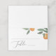 Add a refined touch to your seating arrangement with this citrus inspired folded place card. The design features watercolor oranges and leafy greenery for a natural, cheerful look that complements rustic, Tuscan, or garden weddings. Perfect for assigning guest seats or labeling tables. These tented escort cards blend effortlessly with citrus centerpieces or wooden accents. Their clean layout and elegant calligraphy make them suitable for both casual outdoor receptions and sophisticated summer celebrations.