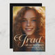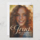 Personalized Class of 2024 graduation announcement photo flat card with a text overlay of the word "Grad" in an elegant font. Personalized with 2 photos, graduate's name, school name, and graduation year. The note on the back can speak of your graduate's accomplishments in high school and/or their plans for the future. It can include information about the graduation ceremony or an invitation to your graduation party.