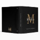 Elegant Classic Black and Gold Script Monogram 3 Ring Binder