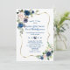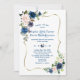 Elegant Classic Blue Pink Flowers Gold Wedding Invitation