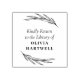 Add a timeless touch to your personal library with this Elegant & Classic Custom Book Rubber Stamp. Featuring two beautifully detailed botanical floral decorations above and below the text, this design is perfect for marking your beloved books with grace and style. The center features vintage-inspired typography with the phrase of your choice—such as “This book belongs to” or “From the Library of”—while your custom name appears elegantly at the bottom. A perfect blend of old-world charm and natural beauty, this stamp makes a thoughtful gift for book lovers, teachers, or anyone who cherishes their collection. Ideal for bookplates, journals, or stationery, it’s a sophisticated way to make your mark.