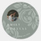 Elegant Classic Damask Script Photo Sage Wedding Round Sticker
