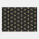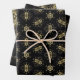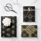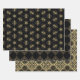 Set of three wrapping paper sheets with different patterns. Each pattern features faux gold ornaments on a black background.