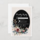Elegant Classic Floral Rustic Wedding Response 4. This beautifully designed wedding customizable RSVP card for your guests, features a classic black oval center with elegant floral arrangements in soft blush, cream, and dusty blue hues.