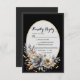 Elegant Classic Floral Rustic Wedding Response 5. This beautifully designed wedding customizable RSVP card for your guests, features a timeless floral design with soft ivory, gold, and silver-gray tones. Set against a classic black background, it beautifully frames the event details in a sophisticated serif and script font combination.