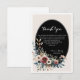 Elegant Classic Floral Rustic Wedding Thank You 4. This beautifully designed elegant rustic wedding Thank You card for your guests. Features a classic black oval center with elegant floral arrangements in soft blush, cream, and dusty blue hues.
