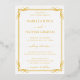 This classic wedding invitation features an elegant gold and white design. The invitation's sophisticated style is highlighted by a luxurious gold border and stylish fonts, conveying a sense of timeless elegance. This formal and traditional invitation ensures guests feel honored and welcomed to the special day, with a reception to follow the ceremony. The design beautifully captures the essence of a refined and elegant wedding celebration.