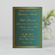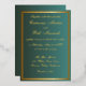 Invite your loved ones to your special day with this timeless green and gold wedding invitation. Designed with an elegant gold border and formal script fonts, this classic layout exudes sophistication and luxury—perfect for black tie events, evening ceremonies, or traditional weddings. Fully customizable with your wedding details.