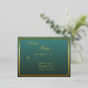 This timeless Emerald and gold wedding RSVP card features an elegant script font and a luxurious gold border, perfect for classic and formal wedding themes. With its refined layout and sophisticated color palette, it is ideal for black-tie weddings, luxury soirées, or evening receptions. Easily customize with your RSVP details to match the rest of your invitation suite.