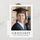 Graduation thank you card featuring your photo and the text "graduate" ina n elegant fornt with your year and school name below. Additional photo and custom thank you message on the back. Black text on white background.