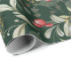 This elegant and timeless Christmas wrapping paper showcases an intricately hand-drawn floral and greenery pattern in the timeless shades of red, green, and ivory, set against a custom background color (as illustrated in dark green).