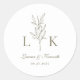 Elegant Classic Leaf Monogram Wedding Olive Green Round Sticker
