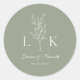 Elegant Classic Leaf Monogram Wedding Sage Green Classic Round Sticker