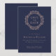 Elegant Classic Navy Dusty Rose Wedding Save the Date. Beautiful Save the Date with dusty rose colored script text on midnight navy blue adorned with a lovely rose copper blush circular frame. Personalize with your wedding save the date details. We invite you to visit our Zazzle store, Austen & Grace, to view the full wedding suite, matching products and more. Please contact us if you require any assistance email: contact@austenandgrace.com