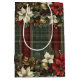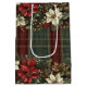 Elegant Classic Plaid Red Poinsettias Holly & Gold Medium Gift Bag
