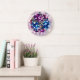 Elegant, purple and blue rose flowers photo wall clock. Design with custom background color. Beautiful add to your interior.