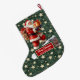 Perfect! Exactly what I ordered! I uploaded a picture of my blue chow, and the screen print was incredible. the back side of the stocking was the red and black checkered print. my puppy's name was also printed on the cuff of the stocking. PERFECT! Highly recommend this product! My puppy's name was screen printed onto the cuff of the stocking, the font was perfect!