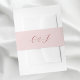 Trendy romantic vintage handwriting style calligraphy script bride and groom monogram names initials personalized pastel pink wedding invitation belly band.