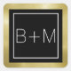 Black square with faux gold border and couple initial letters in a thin and elegant font-style