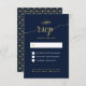 This gold & navy blue wedding rsvp card design features a beautiful gold typography and elegant graphic elements. More matching items are available in my "Elegant Classic Wedding Collection". BaraBomWedding