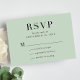 Classic traditional light sage green wedding RSVP enclosure card featuring "RSVP" in elegant serif typography.