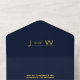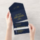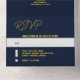 With its elegant dark blue background and gold text, this all-in-one wedding invitation is a work of art, setting the stage for a wedding day filled with love, joy, and unforgettable moments.