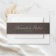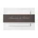 Minimalist personalized wedding invitation belly bands featuring elegant script names in brown color.