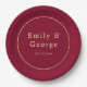 Make your wedding reception even more memorable with these elegant and modern paper plates. The bold burgundy background sets the perfect stage for the luxury gold calligraphy, creating a sophisticated and eye-catching design. The simple and versatile design allows you to coordinate with any wedding theme, while the customization options let you choose the perfect color to match your unique taste. These plates will not only serve their practical purpose but also add a touch of glamour to your special day. Upgrade your wedding dining experience with these stunning and customizable paper plates.