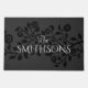 Elegant Classy Charcoal Grey Floral Family Name Doormat