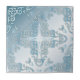 Elegant ceramic tile design featuring a baroque ornate border on a light blue metallic background.