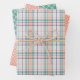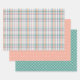 A fun, colorful wrapping paper sheet set featuring adorable gingham plaid, tartan stripes, and polka dots in light coral orange, mint green, violet purple, and white. It showcases an ornate, funky, modern, and whimsical hipster style, ideal for Spring and Easter themes. This original, elegant, chic, and stylish gift wrap is perfect for bringing smiles to friends and family as they unwrap their Spring break holiday presents.