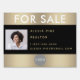 A modern, simple and elegant geometric, personalized photo lawn yard sign that features a holographic frosted glass, black and gold background. This custom "For Sale" photo lawn yard sign is perfect for real estate agents, property managers, realtors, brokers and others in the property management industries.