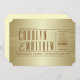 Plain white envelopes are included with paper invitations and will come to fit the invitation size you select. If you don’t need the envelopes, you may choose to not receive them by selecting the dropdown below "Envelopes" and choosing "None." If you’d like to have a design on your envelopes, you can browse all of these available envelopes to find the design that complements your Elegant Classy Gold Wedding Ticket Invitation.