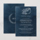 Elegant and classy wedding design. Navy blue watercolor paper. Beautiful seashell with flowers. White lettering. Elegant font combo. Wedding monogram: classic laurel wreath with bride’s and groom’s initials in it. Perfect for beach wedding, seaside wedding, coastal wedding, or ocean wedding. Blue and white color theme, simple elegant design make it a great choice for a classy, semi-formal wedding.