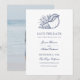 Elegant and classy save the date design. Beautiful seashell with flowers. Navy lettering. Elegant font combo. Perfect for beach wedding, seaside wedding, coastal wedding, or ocean wedding. Blue and white color theme, simple elegant design make it a great choice for a classy, semi-formal wedding.