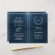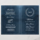 Elegant and classy wedding design. Navy blue watercolor paper. Beautiful seashell with flowers. White lettering. Elegant font combo. Wedding monogram: classic laurel wreath with bride’s and groom’s initials in it. Perfect for beach wedding, seaside wedding, coastal wedding, or ocean wedding. Blue and white color theme, simple elegant design make it a great choice for a classy, semi-formal wedding.