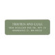 Classic return address labels. White serif and sans serif fonts on a sage green background. Stick to the left front or back flap of envelopes and small packages.