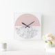 elegant clear blush pink marble geometric circle square wall clock