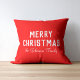 A classic Christmas pillow with a vibrant red color. Featuring bold, modern white text that reads "Merry Christmas," alongside a personalized handwritten name or surname of the recipient, making it a thoughtful and unique touch for holiday gifting.
