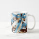 Elegant coffee blue ribbon bows monogram mug