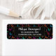 Address labels designed with an elegant pattern with a graphic illustration of fluttering butterflies in many bright colors, contrasting very nicely on the black background. Whimsical florals, sprigs and leaves add a bit of charm. A black frame with a gold colored border layered over top with your personalized text inside.