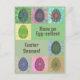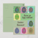 The design features an abstract presentation of a collage of Easter eggs in green, pink, blue, yellow, purple, and orange among other shades and colors. Two typography fields, which currently read "Have and Egg-cellent" "Ester Season!" are customizable for personalization of the Easter wishes.