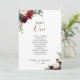 This elegant colorful table number 1 seating chart is perfect for a modern wedding. The design features hand-painted pink, blush, burgundy, red, maroon and blue roses and peonies with green foliage neatly assembled into a charming bouquet.