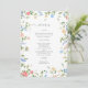 Add a romantic, garden-inspired touch to your reception tables with this elegant wildflower wedding menu card. Featuring delicate watercolor blooms in soft blush, blue, and golden hues at the top and bottom, this design beautifully frames your menu selections with timeless floral charm.