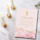Elegant pink and gold agate decorate this pretty personalized confirmation congratulations card for a girl's Christian ceremony celebration. Customize with a name and your blessings under the beautiful cross. May god bless you.