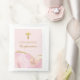 Elegant pink and gold agate decorate these pretty personalized confirmation drink mix for a girl's Christian ceremony celebration. Customize with a name under the beautiful cross for a chic religious party favor.