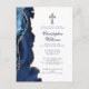 Modern navy blue and gold agate decorate this elegant confirmation invitation postcard for your Christian ceremony celebration. Customize with a name under the cross for beautiful religious party invite postcards.